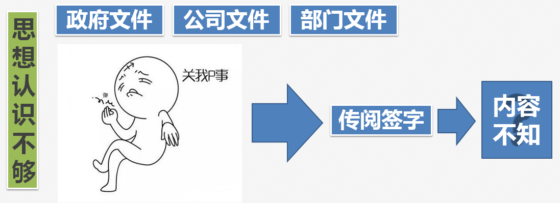 4、思想認(rèn)識(shí)方面—政府、公司、部門的文件學(xué)習(xí)留予形式,監(jiān)理意識(shí)淡薄,對(duì)質(zhì)量安全無(wú)敬畏感!